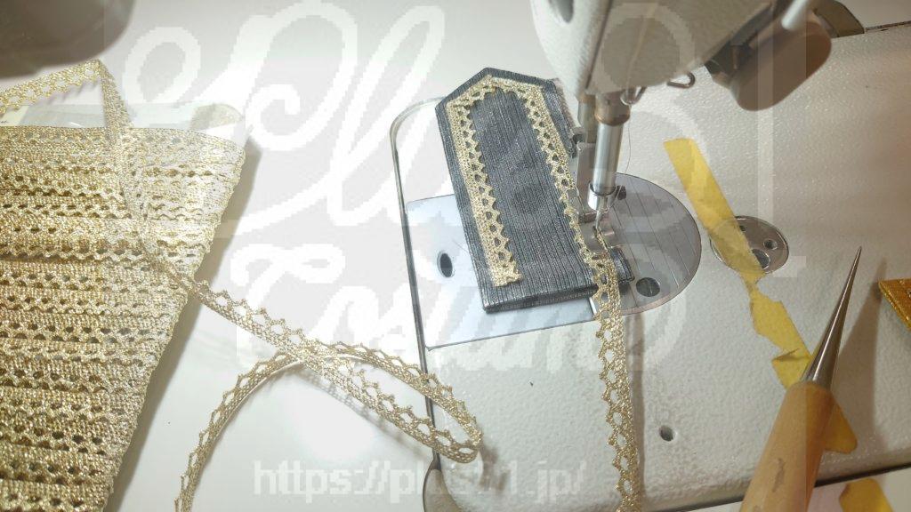 肩章にラメレースを叩いているところです。
