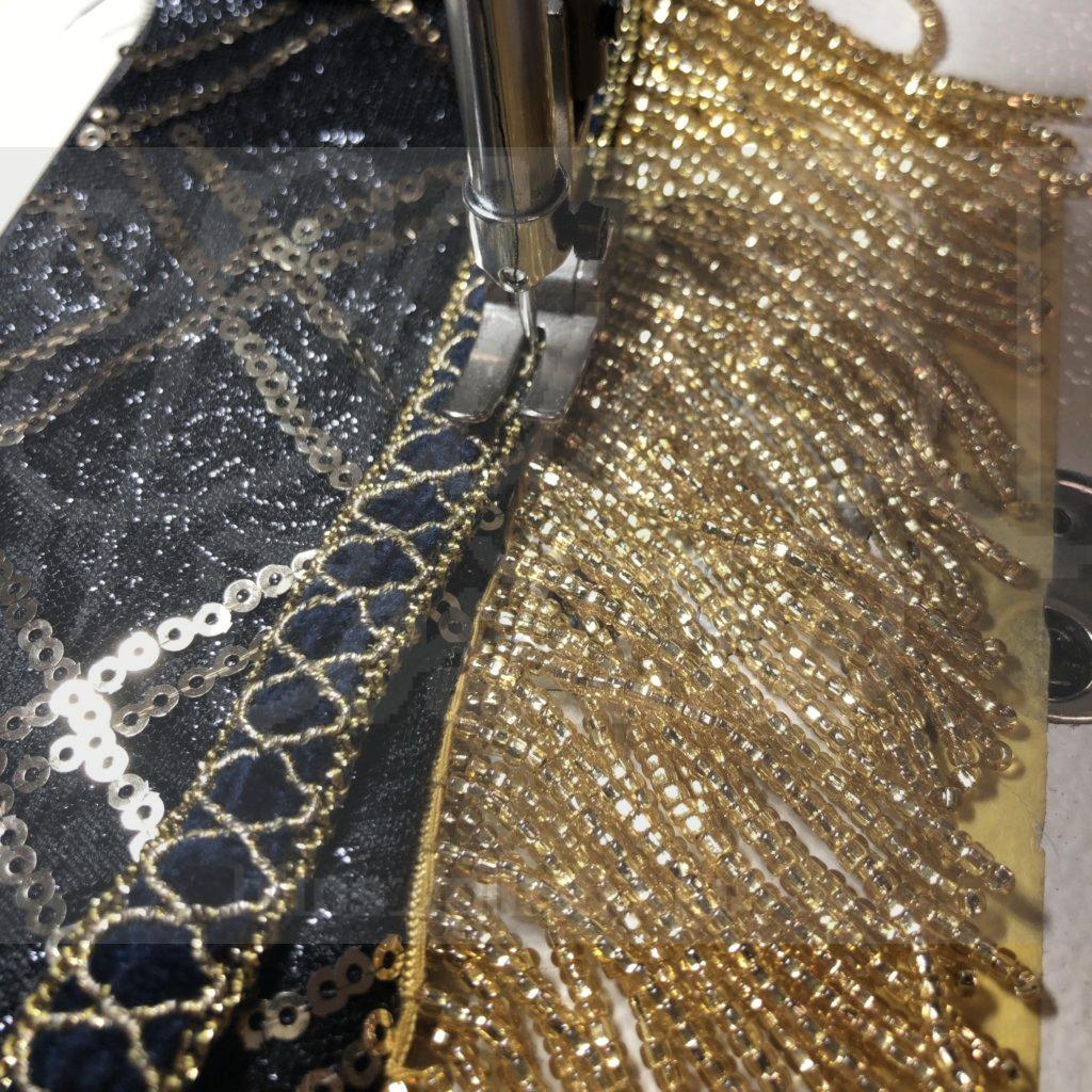 ビーズなどの硬い素材の近くを縫う際は、かなり慎重にいきます。