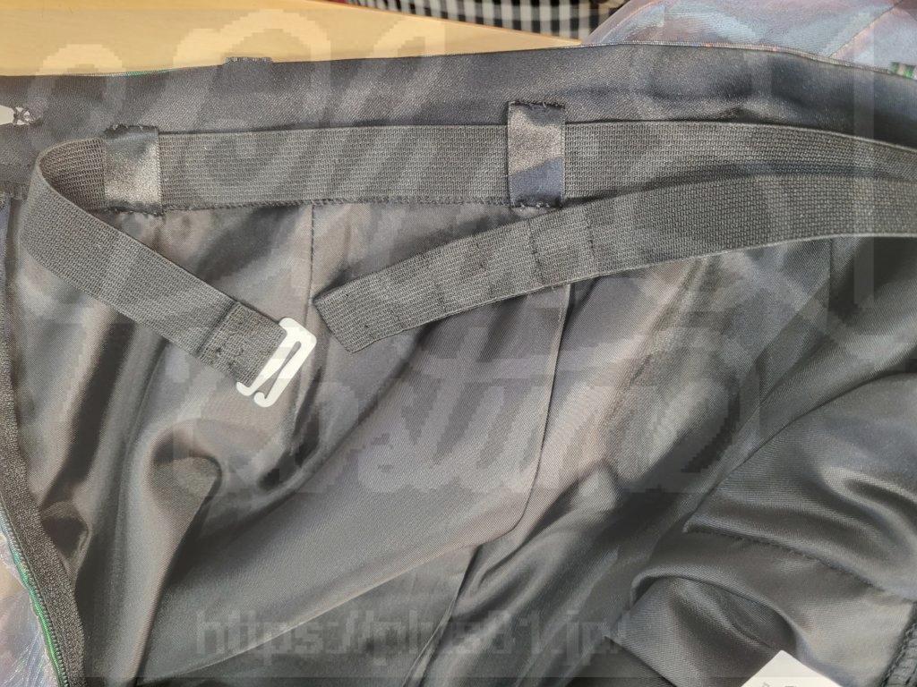 特にワンピースタイプのものに多いですが、こうして中にゴムを付けることによって、衣装の見た目に影響することなくギュッと締めることができます。